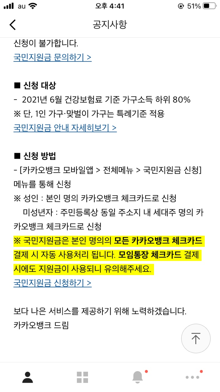 카카오뱅크 체크카드 국민지원금 신청
