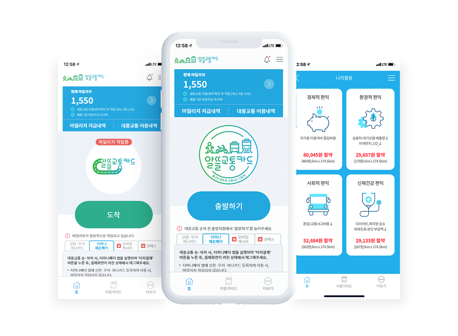 대중교통을 이용하기 위해 도보나 자전거 여행만큼 마일리지를 적립해 카드사 추가 할인 등 대중교통 비용을 최대 30% 절감할 수 있는 교통카드입니다.