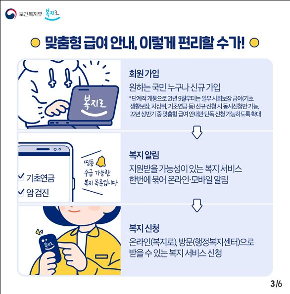 귀하가 어떤 복지 혜택을 받을 수 있는지 결정하기 어렵습니다. 젊은 사람들이 더 오래된 정보에 접근하기가 더 어렵습니다. 또한 많은 사람들이 인터넷 액세스가 부족하여 정보에 액세스하는 데 어려움을 겪고 있습니다. 개인정보를 온라인 또는 방문접수를 통해 등록하면 '맞춤급여안내 - 복지회원가입' 제도를 통해 해당 복지서비스 및 혜택에 대한 정보를 편리하게 제공받을 수 있습니다.
