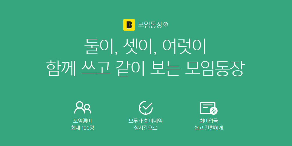 카카오뱅크 모임통장은 2인, 3인 이상이 함께 사용할 수 있는 통장입니다.
