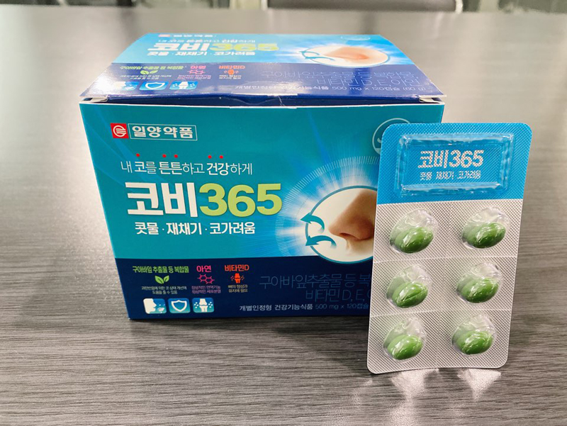 코비365에는 구아바잎추출물 등의 복합물이 주원료로 들어가 있어요. 이 복합물은 수양성 콧물, 재채기, 코가려움에 효과가 있다고 해요. 또한, 비타민D, 아연, 비타민E 등이 함유되어 있어서 면역기능에 필요하고, 세포를 보호하는 데에도 도움을 준다고 하네요.