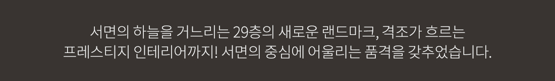 - 부산 대표 상권과 업무지구의 중심, 서면 단 하나의 하이엔드 생활숙박시설