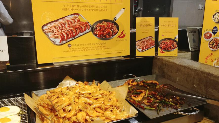 새우 풀 코스 한번 먹어봐야 하지 않겠어요? 여러분들은 어떤 새우요리를 좋아하는지 모르겠어요. 새우 소금구이와 마라 새우구이 등 여러 가지 메뉴가 있는데요. 마라 구이는 알싸한 맛이고 새우 소금구이는 확실히 짭조름한 맛이지요. 둘 다 더 맛있어요. 팁이 있는데, 맥주랑 함께 먹으면 더 맛있다고