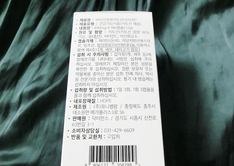한국산 원료를 가공하여 사용한 제품인데요. 키토산 함량이 90%나 들어있어요. 이 키토산에는 양이온성 식이섬유질로 위에서 잘 녹는 성분이에요. 그리고 녹은 키토산은 음식물에 흡착 배설해요. 그래서 배변량이 증가하거든요. 이학박사 한상문 선생님에 의해 개발된 제품인데요. 엄청 전문적인 느낌이 팍팍 듭니다. 이 제품은 건강기능식품이라서요. 조금 꼼꼼하게 보고 섭취할 필요가 있는데요. 닥터 한스에서 판매되고 있는 제품이에요!