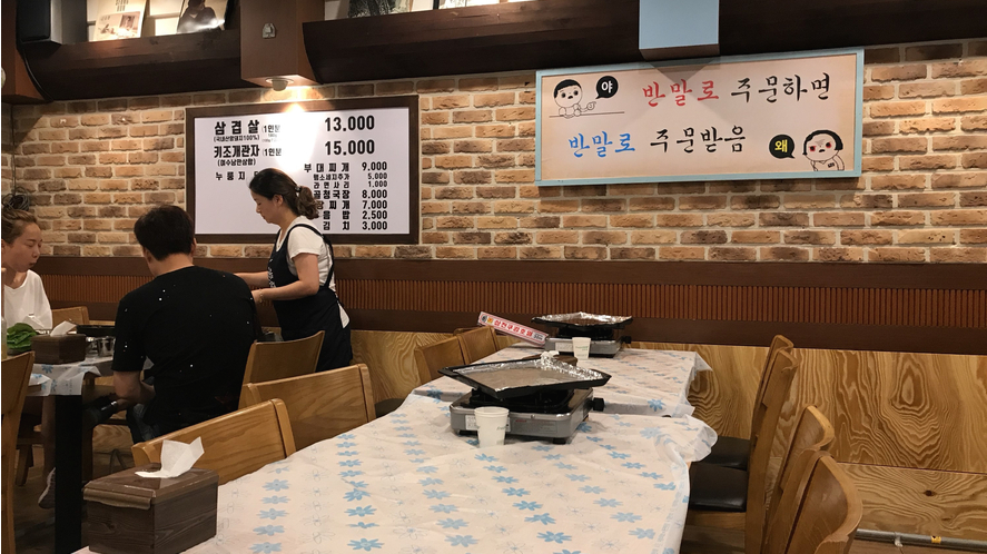 센스넘치는 팻말을 볼 수 있었습니다. 요즘 매너있는 사람들이 점점 안보이는 것 같아요. 식당에 오더라도 매너있고 친절한 손님이 되고 싶습니다. 여기는 1등급 생고기를 사용하는 곳이라고 나와 있고, 음식들도 원산지도 국내산이고 전제척으로 괜찮은 것 같습니다. 돼지고기 김치 쌀 전부 국내산이라고 표기가 되어 있습니다. 착한 식당 인정입니다!