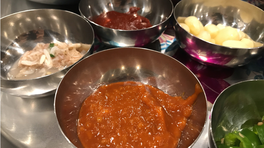 계란찜도 함께 나오고, 마늘이나 고추, 양념, 그리고 여러가지 소스와 나물도 같이 나옵니다.