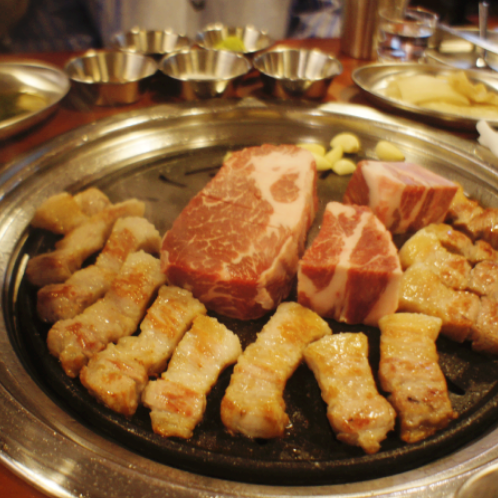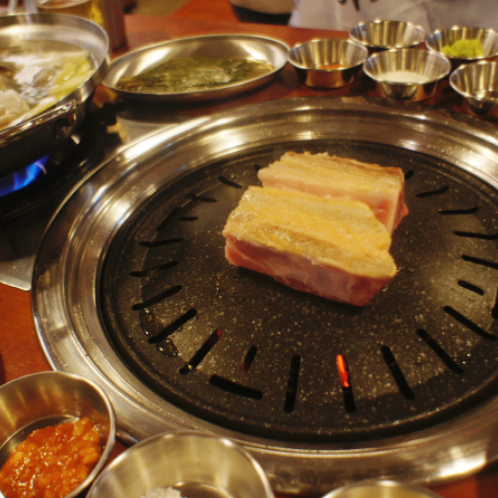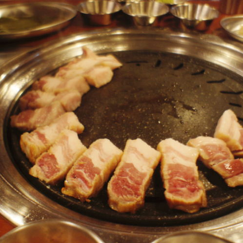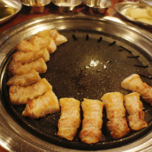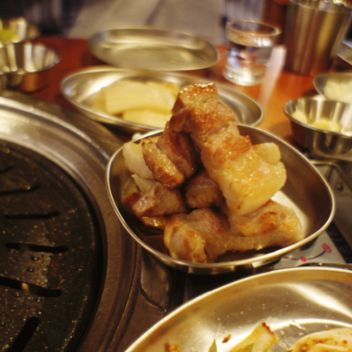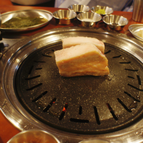 그래서 퇴근할 때 식사를 하고 가는 사람들도 많기 때문에, 저녁식사를 하거나 회식을 하려는 사람들이 굉장히 많죠! 이곳에서는 무엇보다 삼겹살을 먹어봐야 한다고 생각합니다. 선릉역 삼겹살로 유명하다고 하니, 개인적으로 저는 사실 삼겹살 맛은 다 비슷비슷한 거 같은데 여기도 다른 삼겹살 맛집처럼 엄청 특별한 고기 맛을 느낄 수 있다거나 하지는 않습니다. 그렇지만, '맛있습니다.'