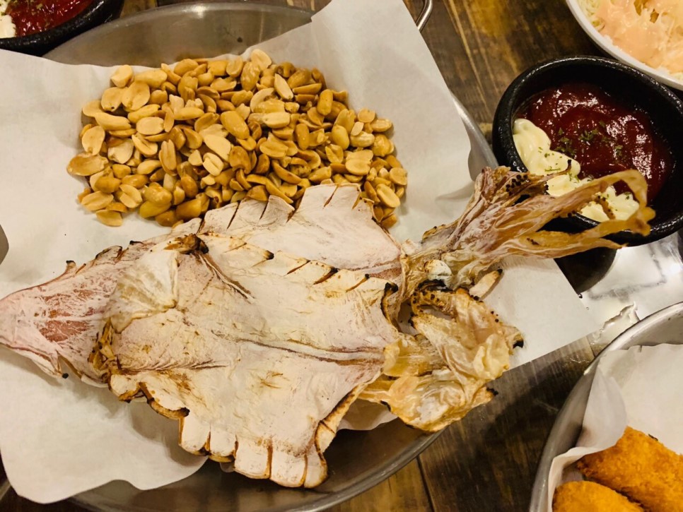 이곳의 메뉴 구성은 한국의 포장마차를 생각하시면 됩니다. 한국 포장마차에서 즐길 수 있는 소곱창구이 / 닭갈비/ 제육볶음 / 옛날통닭 / 닭발 / 어묵탕/ 고추장찌개/ 닭똥집 / 떡볶이 등 한국 포장마차에서 찾을 수 있는 메뉴들로 구성이 되어 있습니다.