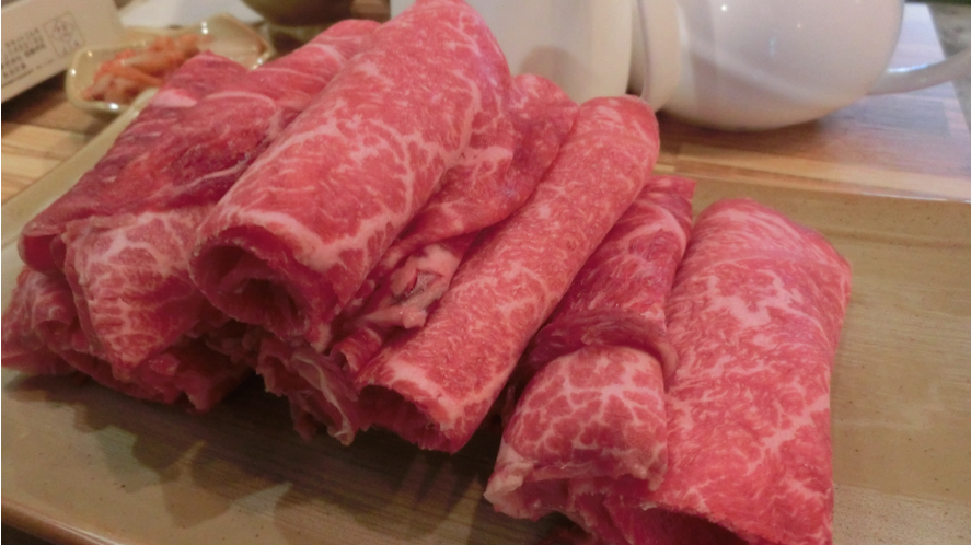 여기 고기는 1등급 한우를 사용하고 있어서 고기 상태가 아주, 매우매우 좋아요. 고기가 진짜 맛있답니다. 스키야키는 잘 익은 고기와 채소들을 전골처럼 간장이랑 육수에 적셔서 끓여서 먹는 건데요. 채소랑 같이 먹을 수 있어서 엄청 건강하답니다.