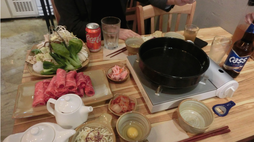 전날에 잠을 제대로 못자서 피곤했지만, 그래도 맛있는 스키야키를 먹을 수 있어서 기분이 좋았습니다. 스키야키 먹기 전에 집에서 밥을 조금 먹고 왔는데, 스키야키 양이 많아서 다 엄청 배불렀지만, 진짜 맛있었답니다.