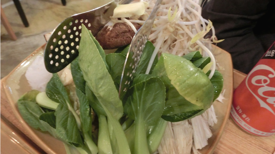 이것저것 나물이랑 콩나물, 팽이버섯도 들어있고 푸짐한 채소가 준비되서 맛있는 스키야키를 먹을 준비가 완료되었답니다.
