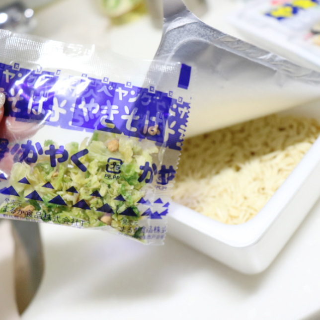 이렇게 겉 포장지에 조리법이 그려져있지만, 그냥 의식의 흐름대로 조리해도 충분히 맛있는 야키소바를 만들 수 있다. 소스가 이렇게나 많이 들어간다! 물론 음식점에서 먹는 야키소바 맛과는 또 다르지만, 충분히 비슷한 맛의 야키소바, 배고플 때, 먹으면 입에 쏙쏙 들어가는 마법같은 음식.