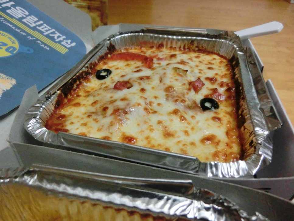 통마늘 불고기 피자인데요. 개인적으로 한번 먹어보고 싶어서 먹어봤는데, 다음부터는 통마늘은 안 시키는 걸로, 개인적으로 피자는 역시 치즈가 잔뜩 있는 치즈크러스트 피자가 가장 맛있는 것 같다는 생각, 그리고 도우도 뭔가 조금 더 빵빵했었으면 하는 느낌이 들었어요.
