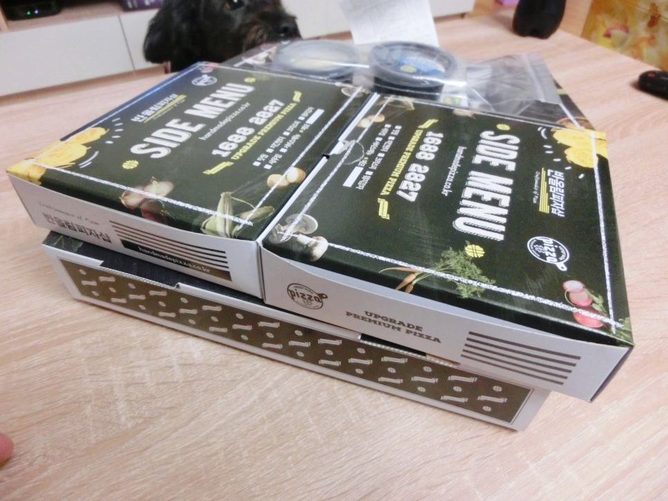 피자 박스는 굉장히 깔끔하고 먹기도 좋았다. 사이드 메뉴 박스도 직접 주문해서 오나보다.