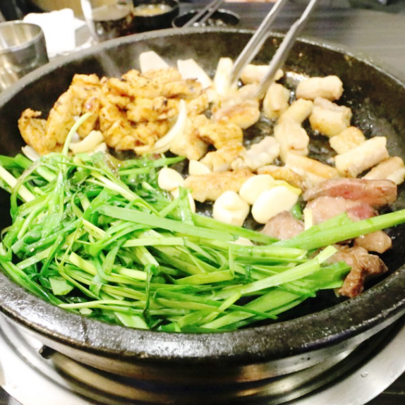 어느 정도 살짝 구워져서 나와요. 양깃머리는 바로 먹을 수 있고 깔끔하고 담백한 맛이에요. 질기지 않는 맛을 좋아하시는 분들은 양깃머리 드셔 보세요. 부추는 리필이 가능해서 계속 부추 리필해서 먹었어요.