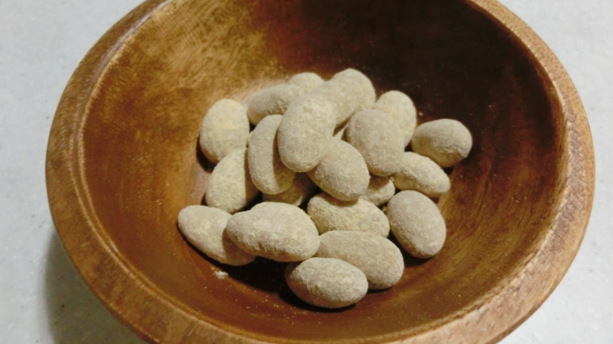 누티라는 뜻은 견과류 맛이 나는 이라는 뜻인데요. 아몬트 초콜릿이에요. 캐러멜 맛이 나서 누티 캐러멜 아몬트, 캐러멜 맛이 나는 초콜릿으로 코팅을 한 맛있는 디저트로 고소한 콩가루로 옷을 입힌 맛있는 초콜릿이에요.