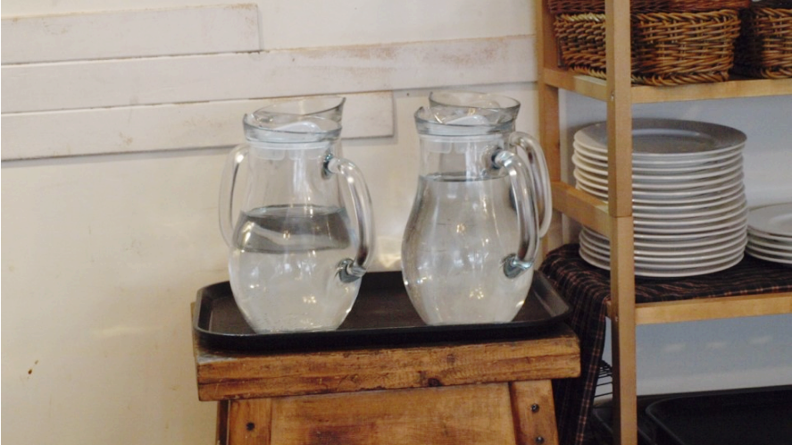 물병이 너무 투명하고 귀여워서 일부로 저런 물병을 골랐나 싶기도 했습니다. 일반적인 식당에서는 스테인리스 물병을 주로 사용하는데, 저 물병은 제 취향을 저격했어요. 투명한 느낌이 너무 좋아서 뭔가 조금 성수 같은 느낌도 들었답니다.