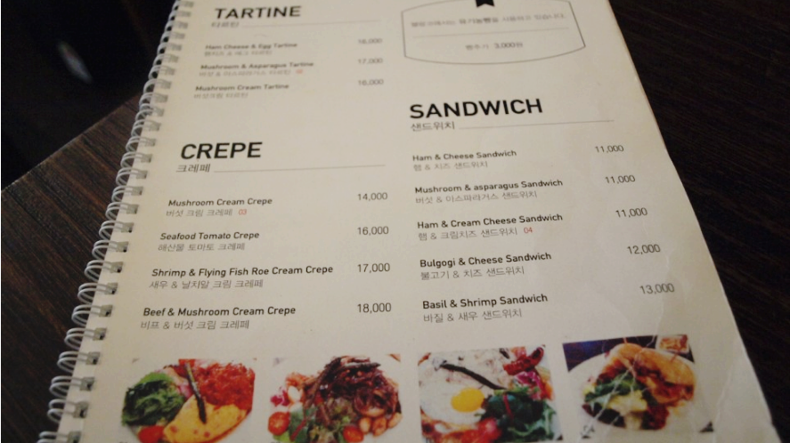 브런치 카페 메뉴판