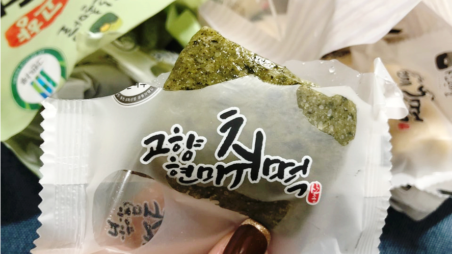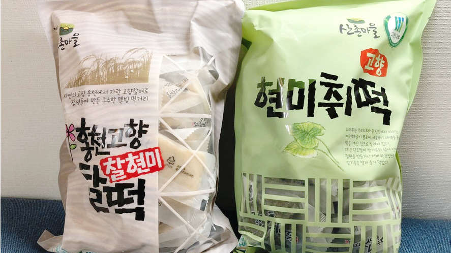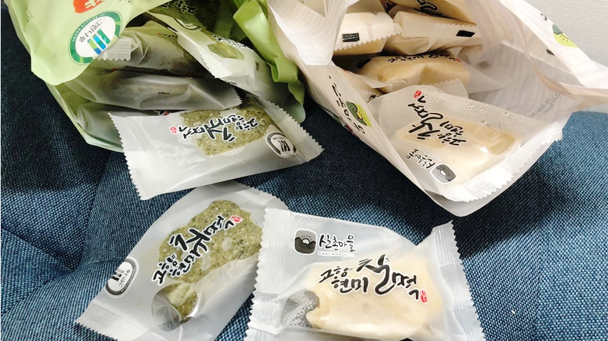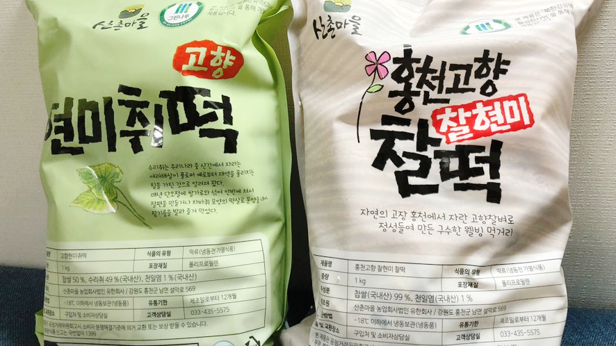 두 개 떡 모두 방부제가 들어있지 않고 색소도 들어있지 않은 그대로의 떡이예요. 국내산 찹쌀로 만들어진 떡! 천일염 살짝 넣고 설탕 없이 만들어진 떡이예요. 그래서 먹으면 되게 향긋하고 건강한 맛이 느껴지는 맛이였어요.