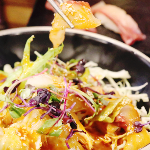 이거는 제가 정말 맛있게 먹은 물회! 샐러드랑 같이 초장과 버무러져 나오는 맛이 새콤하면서도 시원한 맛입니다. 회가 정말 신선한 것 같아요. 음식이 정말 다 신선했습니다. 스시의 생명은 아무래도 신선함이 아닐까요? 연인분들이 함께 오면 더 좋을 것 같습니다. 친구들이나 직장동료분들도 오시면 좋을 것 같은 강남역 초밥 맛집 고메스시!