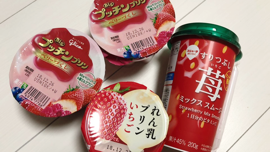 일본 세븐일레븐 글리코 푸칭 푸딩과 요플레, 그리고 딸기 스무디