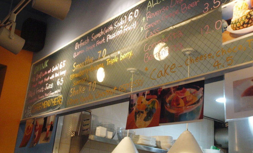 디저트카페 답게 먹음직스러운 메뉴사진이 위에 딱 있었어요. 카페가 살짝 어두워서 메뉴가 잘 안보이긴 했지만 와플을 주문했답니다.