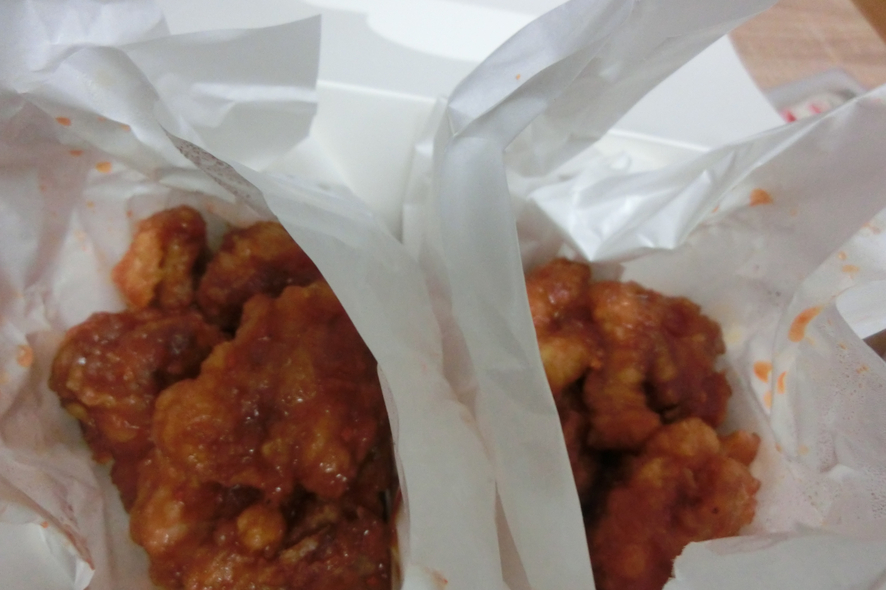 그만큼 한 달 동안에 치킨도 정말 많이 시켜먹거든요. 하지만 이 양념치킨은 뭔가 격이 다른 맛이었습니다. 제가 돈 주고 사 먹었기 때문에 감자칩은 조금 별로였고 양념치킨은 맛있어요. 양념치킨인데 조금 달달한 양념치킨이라고 할까요? 오히려 너무 맵지 않아서 맛있었어요.