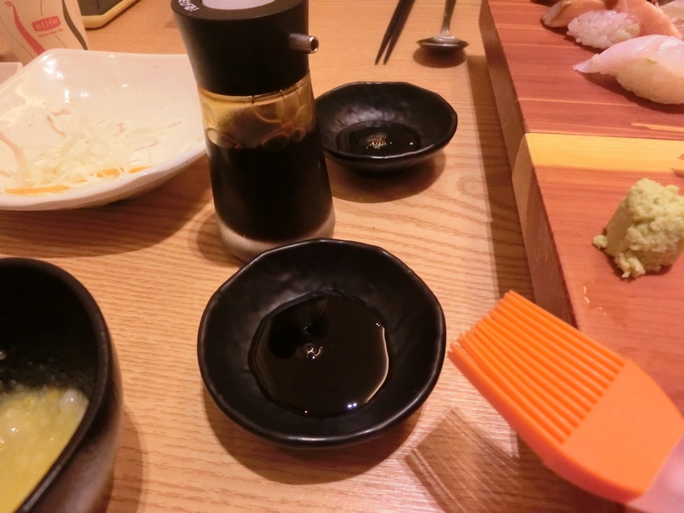 간장이나 소스는 테이블에 배치되어 있고요. 와사비는 초밥 시킬 때 한번에 나옵니다.