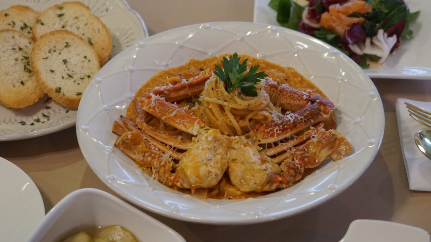 그다음 나온 메뉴는 바로 꽃게 로제 파스타예요. 오랜만에 먹는 꽃게 로제 파스타. 살이 푸짐하게 들어있는 꽃게 한 마리가 들어있는데요. 이거 정말 맛있어요. 호불호 없이 맛있게 먹을 수 있는 맛. 파스타와 꽃게살을 살짝 포크에 올려서 먹으면 진짜 부드럽고 연하고 맛있답니다. 이거는 누구나 즐길 수 있는 맛이에요.