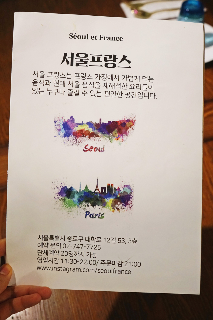 건물이 너무 예뻐서 지나가는 사람들도 기웃기웃 거리는 서울 프랑스입니다. ### 서울 프랑스 영업시간 영업시간은 오전 점심시간부터 오후 10시까지 하고 있는데요. 브레이크 타임이 있어서 이 시간은 피해서 가야만 식사를 할 수 있어요.