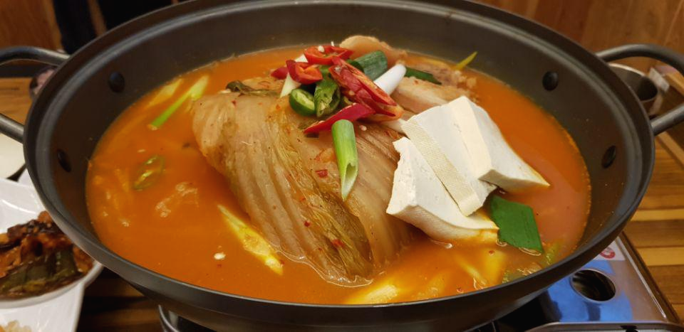 진짜 군침도는 조합이에요. 김치전골 너무 좋아하는데 여기 너무 맛있는 김치전골을 먹게 돼서 행복했어요. 물론 여기 흑돼지 오겹살도 팔고 있어서 고기만 드실 분들도 오시면 좋아요. 워낙 현지인 분들도 많이 오시는 유명한 맛집이라서 웨이팅 시간 있을 수도 있는데 조금 한적한 시간대에 방문하시는 것도 팁이라면 팁입니다.