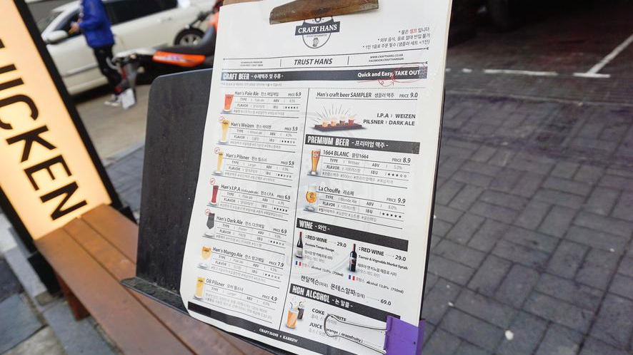 가을에는 역시 수제맥주가 땡기는 것 같아요. 가을 밤에 마시는 술 한잔 소주는 조금 부담스럽고 수제맥주가 땡길 때 예전에 압구정에 있었던 크래프트 한스에 갔다왔던 적이 있는데 수제맥주가 진짜 맛있었거든요. 그래서 되게 맛있게 먹었었던 기억이 나요. 그때는 함참 수제맥주에 관심이 많았었던 터라 수제맥주의 향과 풍미에 관심이 많아서 이것저것 알아봤던 적이 있었죠.