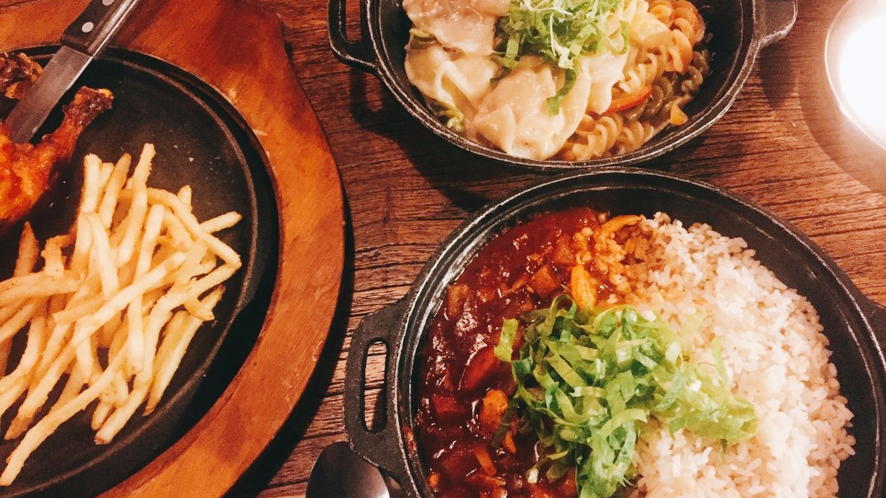 왼쪽이 가장 인기있는 메인메뉴구요. 저희는 라이스 한개씩. 저는 왠지 쌀밥이 먹고 싶어져서 쌀밥을 주로 먹기로 했어요. 파스타 좋아하시는 분은 파스타 드셔도 될듯.