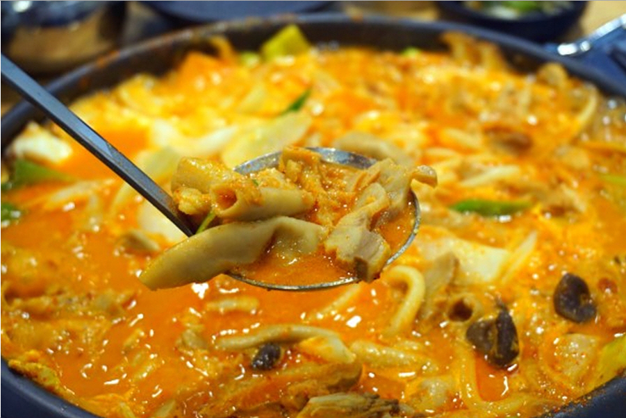 곱창전골 사진 먼저 투척. 가락국수 사리 탱탱하니. 너무 맛있어 보이는 곱창전골. 솔직히 곱창전골 하나만 있어도 술이 술술 들어갈 듯 해장하러 왔다가 술 채우러 갑니다. 저는 술을 워낙 좋아하고 오빠는 조금 사리는 스타일이지만요. 아무튼 너무 좋아하더라고요. 곱창전골은 곱창도 너무 쫀득하고 맛있죠. 양념도 얼마나 잘 뱄는지, 깊은 국물 맛이 그냥 끝내줘요.