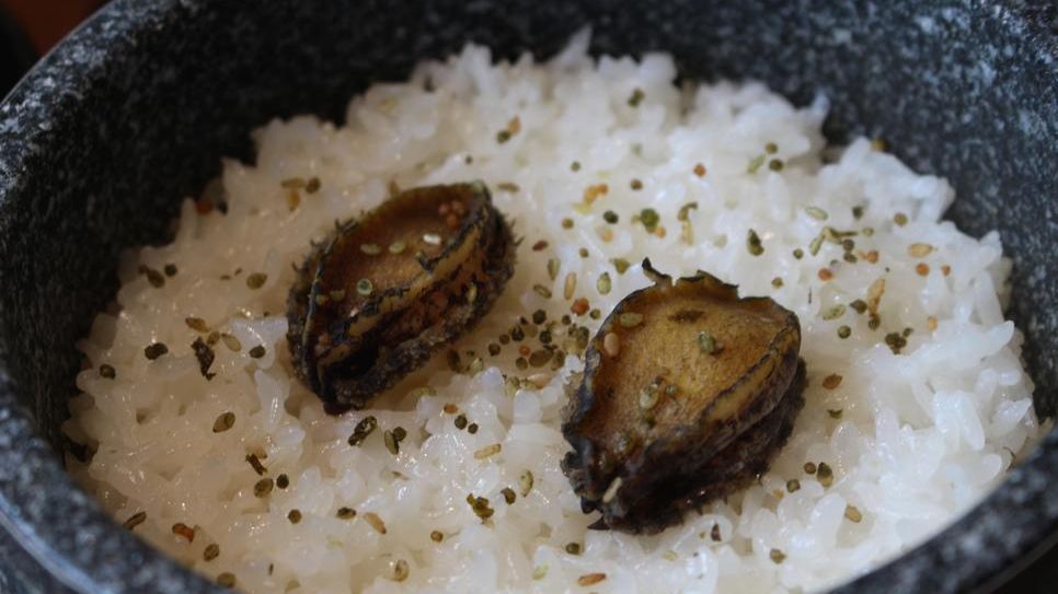 그리고 돌솥밥에 예쁘게 들어가 있는 전복까지. 갈치조림이랑 살코기만 살짝 떠서 맛있게 양념이랑 비벼먹으면 진짜 밥 한 공기 뚝딱 순식간입니다. 너무너무 맛있어서 밥도 몇 공기나 더 주문해서 먹었는지도 몰라요.