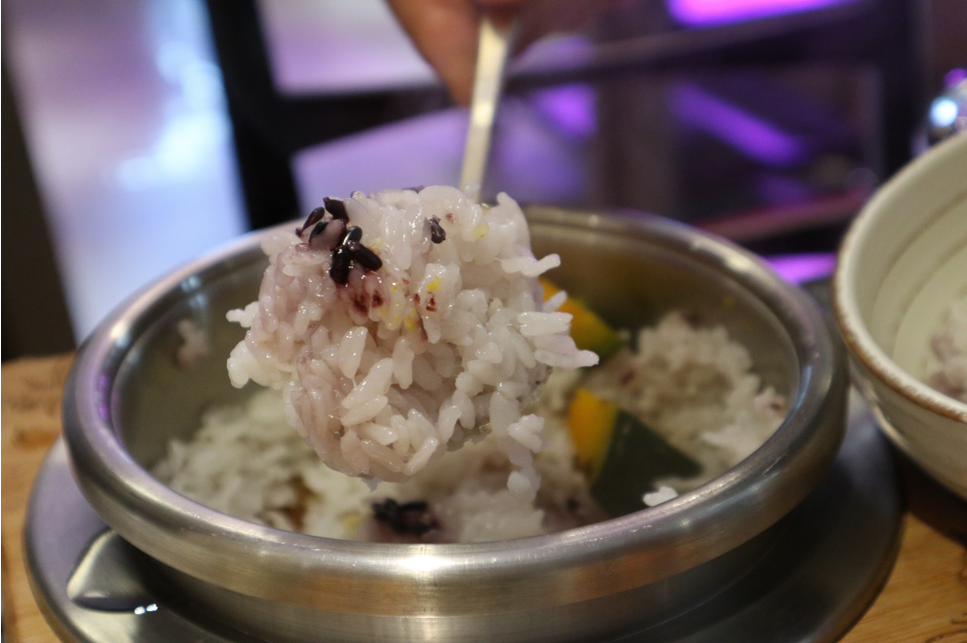 돌솥밥에 단호박이랑 이렇게 나왔습니다. 이런 거 너무 좋다. 한정식 식당에 가면 자주 먹습니다. 김치찌개랑 편백 찜이랑 궁합 좋았습니다.