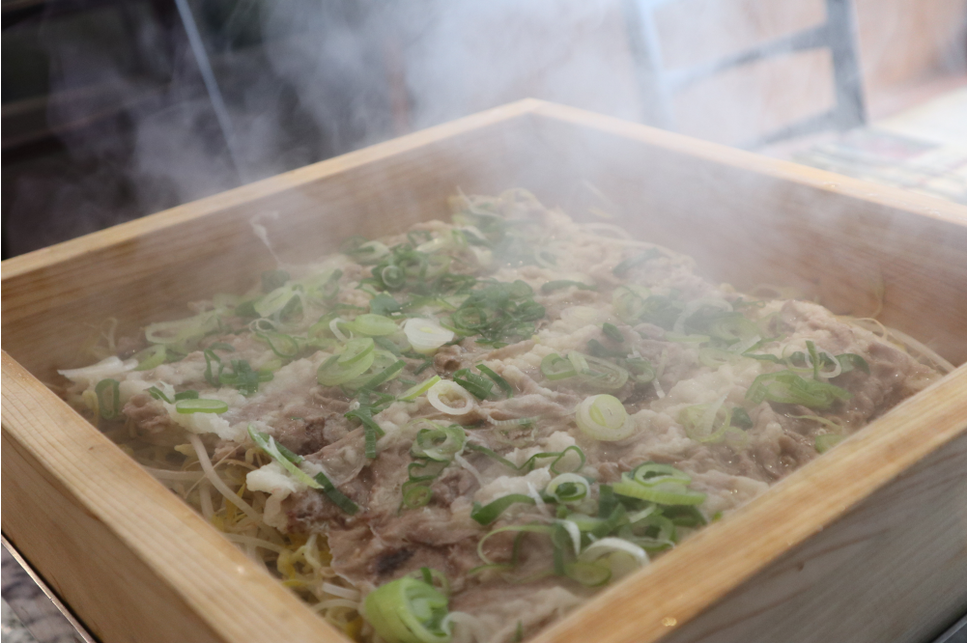 소고기와 숙주, 그리고 대파와 함께 익었습니다. 너무 먹음직스러울 것 같아요. 소스랑 찍어먹기 좋습니다. 샤부샤부 비슷한 느낌이지만 더 맛있습니다.