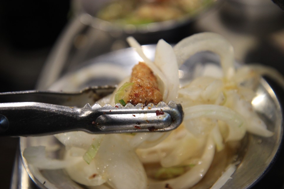 여기서 끝날 줄 알았겠지만. 집개로 잡고 찍어야 음식이 흔들리지 않아서 잘 나온단 말이지! 이건 나만의 사진 찍는 팁인데 말이야! 곱창이랑 부추를 듬뿍 집고 사진 찍기 그리고 식으면 바로 입에 넣고 먹는데 곱창의 곱 터지는 그 고소한 맛과 부추의 식감이 진짜 최고 최고! 경복궁 고깃집 여기 정말 칭찬해!