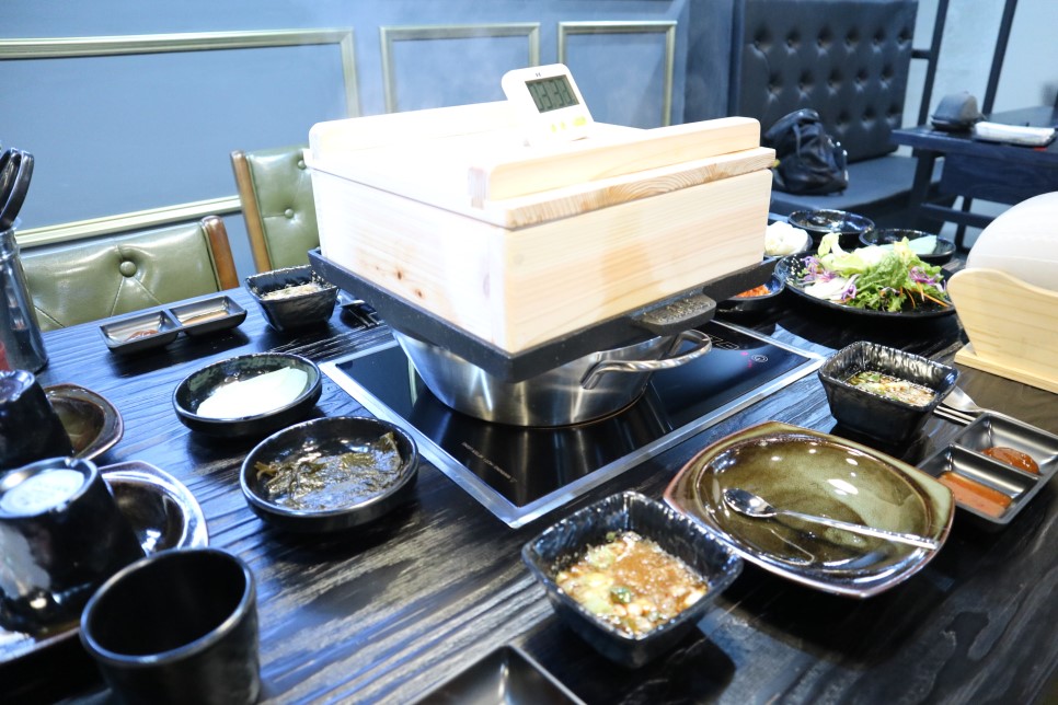 광명 하안점은 편백 상자 안에 찜이 익을 때까지 타이머를 맞춰놓고 일정 시간에 적절한 맛을 찾아서 먹는 편백 찜입니다. 일단, 타이머를 맞춰놓고 편백 찜을 찌기 시작하면, 정말 편백향이 엄청나요! 온 매장이 편백향으로 뒤덮이면서, 뭔가 산속에서 사우나하는 듯한 느낌! 약간 힐링하는 느낌이 들더라고요.