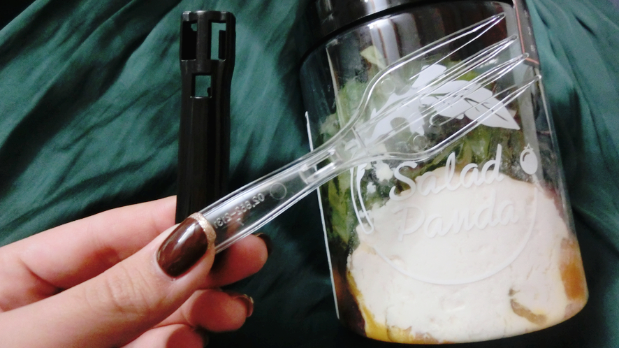 샐러드에 들어가는 채소들은 여러가지 고급채소로 재료가 되었어요. 라디치오, 프리세, 로즈케일, 로메인, 겨자잎, 비트잎 등 총 열 네가지 고급 잎채소들로 만들었대요. 제일 마음에 드는 것은 바로 튼튼하고 예쁜 보틀과 포크예요.