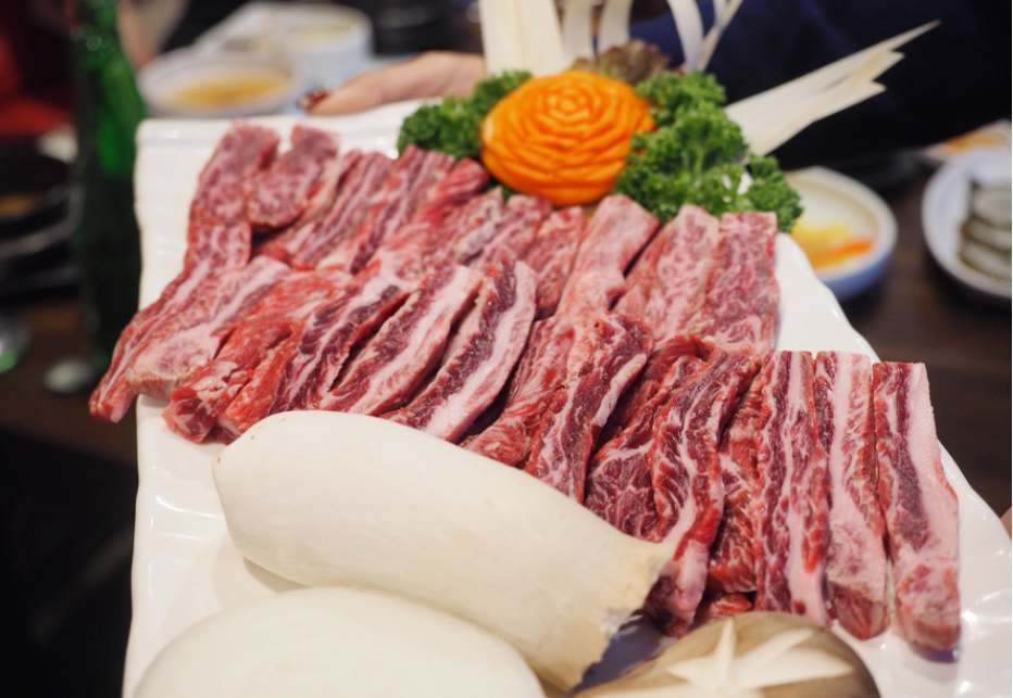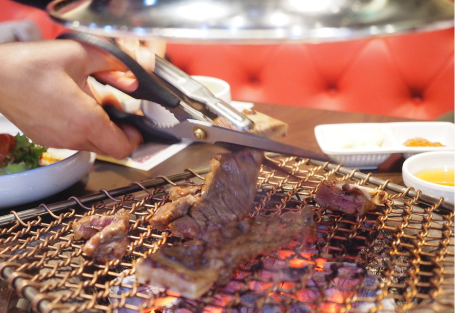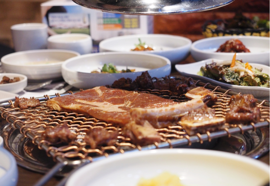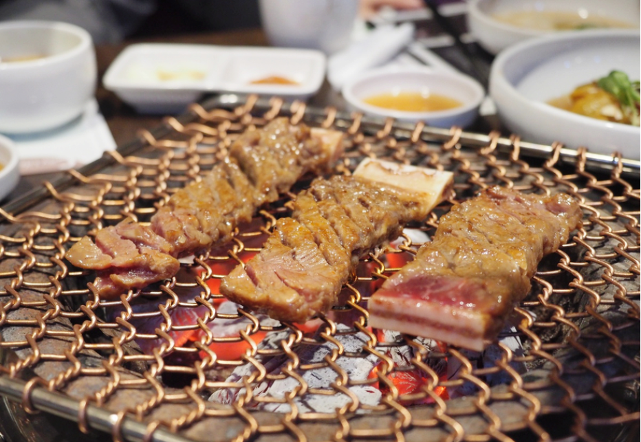 처음에는 직원분께서 구워주셨지만 추가주문 한 갈비부터는 사람들이 왕창 몰려서 저희가 직접 구워 먹었는데 직원분께서 구워주신 고기 못지않게 정말 맛있더라고요. 고기 맛은 변하지 않는다는 걸 보여준 것 같습니다. 불판 가득 올려진 고기들. 익는 동안 후식을 주문하고 남은 갈비들을 먹기 시작했습니다.