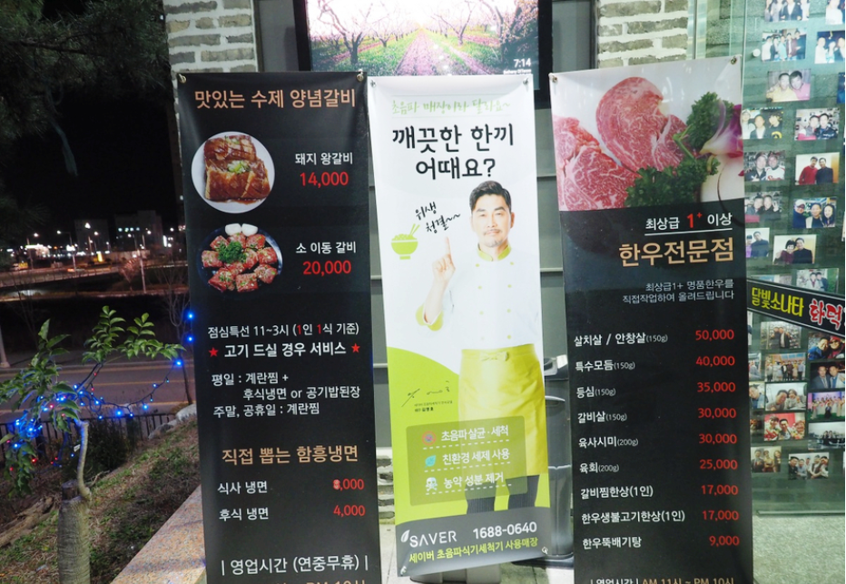 입구에는 미리 가격을 알 수 있도록 엑스 배너로 메뉴판이 있더라고요.