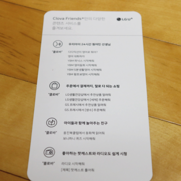인공지능 스피커 사용설명서가 따로 첨부되어 있어요. 사용방법은 정말, 너무나도 쉽습니다. 인공지능 스피커의 전원을 켜시고, 휴대폰의 앱과 연동을 시키면 되는데요, 집에서는 와이파이로 연동해서 사용하고 외출했을 때는 블루투스로 사용을 할 수 있습니다. 다만 와이파이가 된 상태에서만 AI 기능이 작동하고, 블루투스 기능으로 야외에서 활용할 때는, 스피커 기능만 된다는 점 참고하세요!