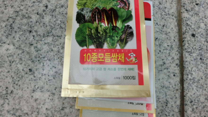 그리고 10종 모듬 쌈채 씨앗도 구매했어요. 이거 나중에 많이 커지면 고기 먹을 때 그때그때마다 수확해서 먹으면 굉장히 재밌고 기분이 신선할 것 같아요. 제가 직접 기른거니까, 또 얼마나 정성스럽게 키울지, 시장에서 파는 것 보다 훨씬 신선하고 맛있으면 좋겠네요.