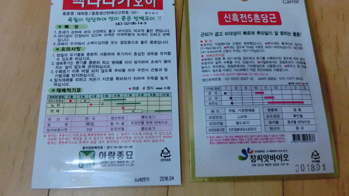 씨앗 포장지 뒷면에는 파종시기 재배적기표가 다 있어요. 그래서 어떻게 언제, 키우면 좋을지 알 수 있는데 더 궁금한 것이 있다면 인터넷으로 그때마다 보면서 키우면 좋을 것 같아요. 우리가 흔히 먹는 채소들도 이렇게 다 다르고 특징이 달라서 하나하나 외우는 맛도 쏠쏠해요.