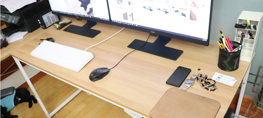 듀얼모니터로 쓰고 있어서 1460 사이즈로 주문했어요, 1260은 모니터 하나일 때, 넉넉한 공간입니다. 그래도 조금 넉넉하게 공간을 쓰시려면 1460으로 써줘야 합니다. 1260은 조금 답답한 느낌이 있어요.
