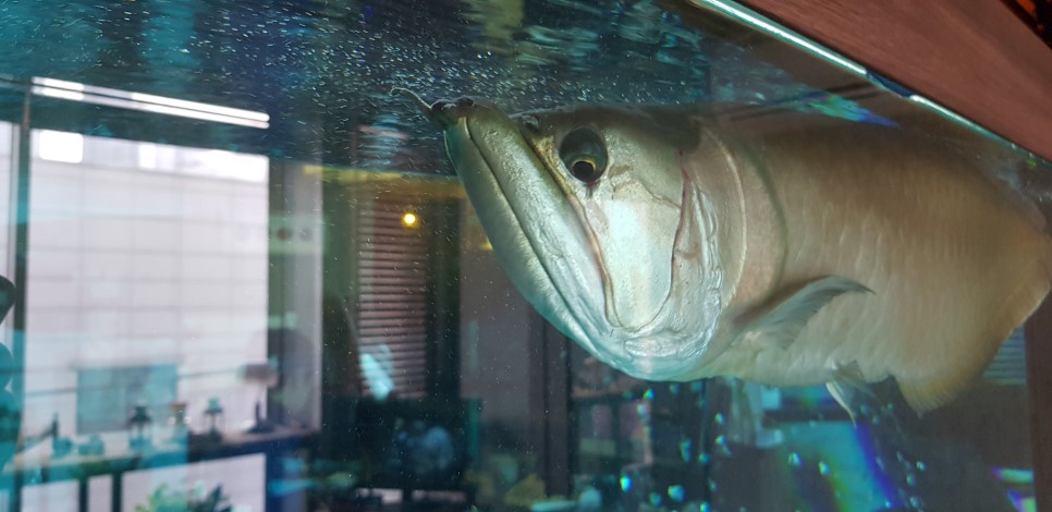 인테리어가 태국에 온 것 같 그런 느낌! 안에 수족관이 있어서 물고기 구경하고 있었다. 아로와나라는 물고기가 있어서 꿈뻑꿈뻑하는데 생긴 것도 되게 신기하게 생겼다.