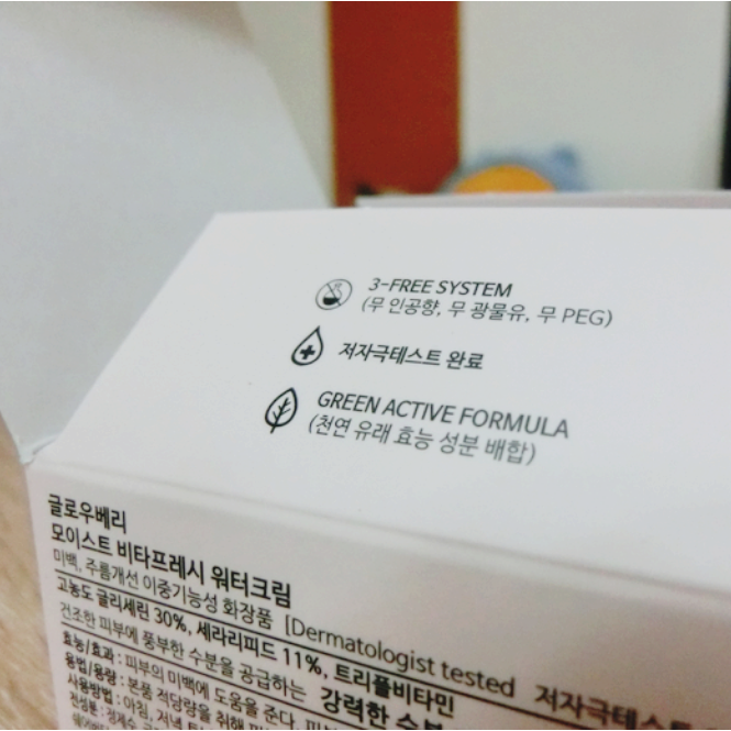 저자극테스트를 완료했고 천연 유래효능성분 배합으로 만들어진 글로우베리 모이스트 비타프레시 워터크림, 고농도 글리세린 30%가 눈에 띄는 제품입니다. 풍부한 수분을 공급하는 제품으로 워터크림, 수분크림은 4계절 내내 꾸준히 발라줘야하는 기초화장품입니다.