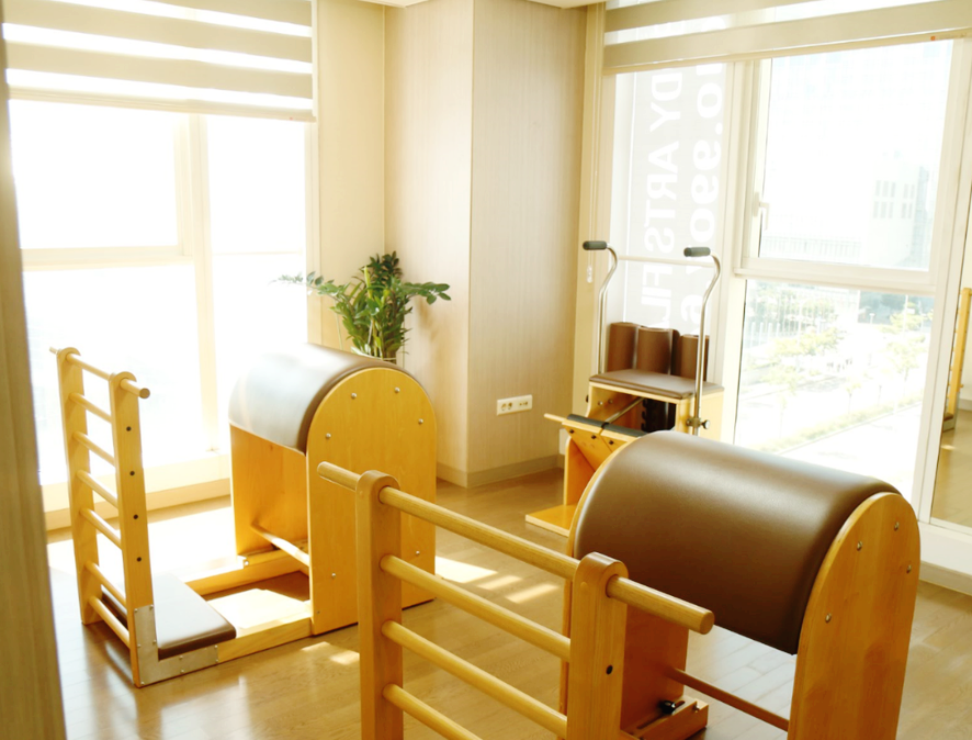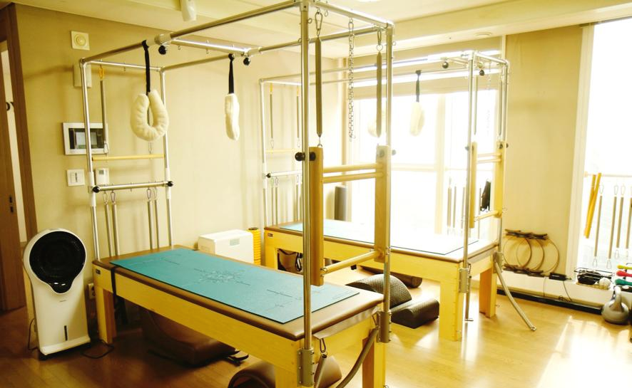 잘 정돈되고 깔끔한 내부예요. 정말 깨끗하고 제가 간 시간대가 점심 즈음이었는데, 채광도 잘돼서 너무 편안하고 안락한 느낌이에요. 아무래도 기구를 활용하면서 운동을 하니까 깨끗한 곳을 선호하게 되더라고요.