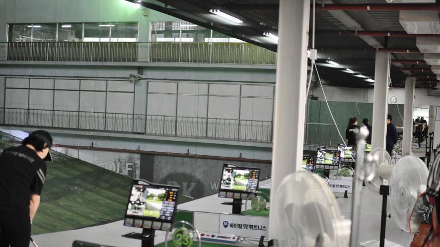 이제 제가 헬스기구 외에도 즐겁게 운동하는 골프 프로그램을 보여드릴게요! 골프는 실내 돔 형식으로 되어있는 60야드로 전 타석 스윙분석기가 설치되어 있어 몇 차까지 나갔나 확인이 가능하더라고요. 무엇보다 실력이 성장하는걸 눈으로 확인할 수 있는 기계적 분석이 있어서 좋았고요. 대형 퍼팅 장이라 스윙하기에 너무 편했습니다.